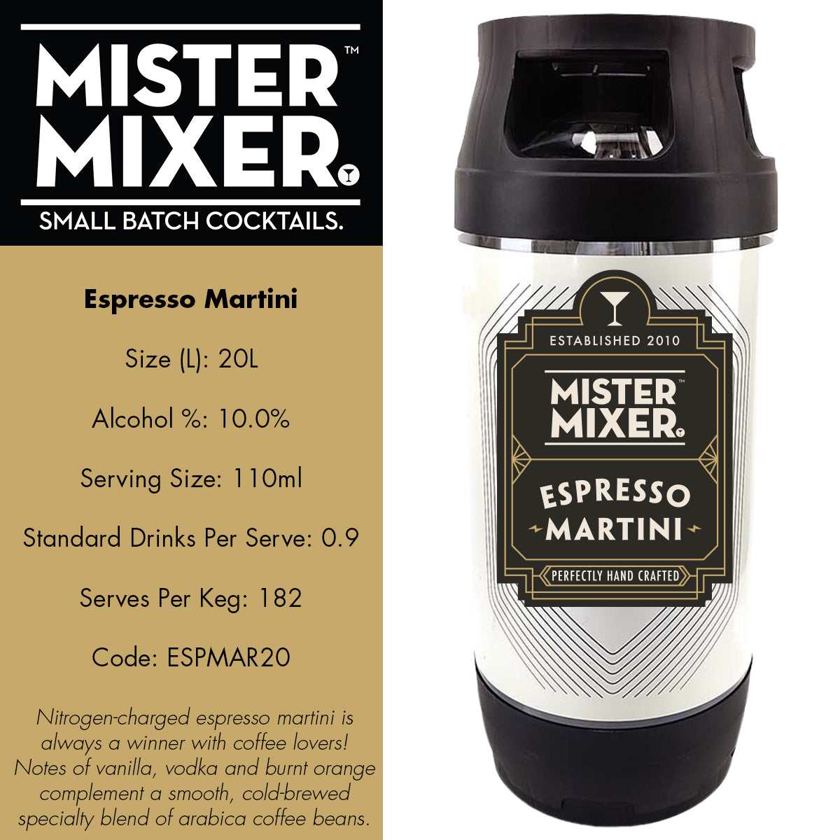 The Espresso Martini can be dispensed with the same gas as your Beer and at a similar pressure (best is 2.0 Bar to ensure there is no carbonation issues).